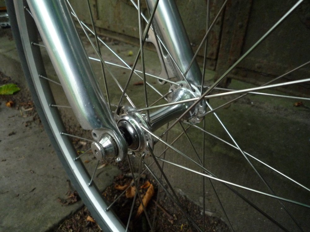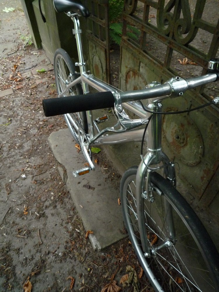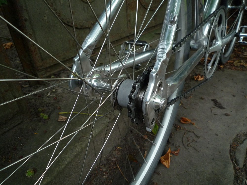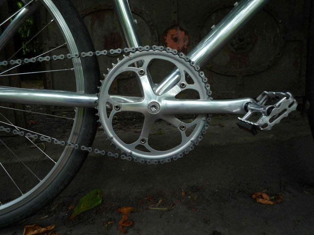 Von den Teilen her ist das Bike eigentlich nichts Besonderes. Die meisten Teile habe ich bei Ebay ersteigert, wobei ich für dieses Rad immer blankes Aluminium gesucht habe. Form und Funktion sind bei diesem Bike gleichberechtigt.