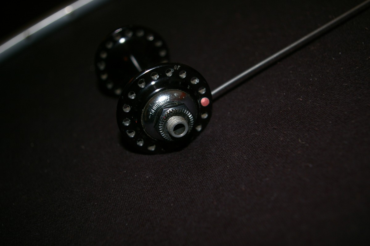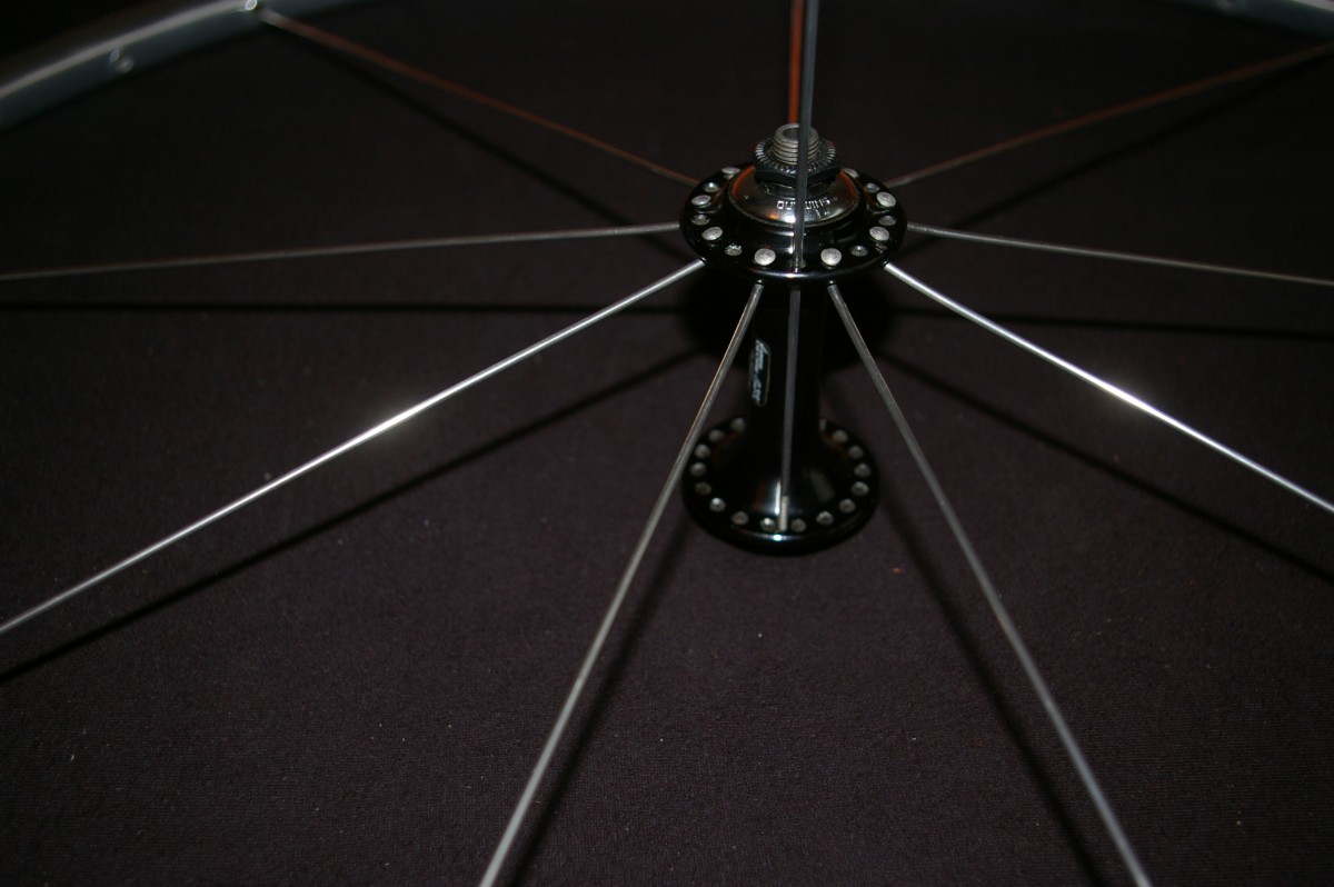 Bei dem Rad auf dem Bild habe ich genau bis zum Gewindeende angezogen. Dann hatten die Speichen schon eine gewisse Spannung. Wenn man dann wie auf Bild 16 auf die Nippel schaut, kann man sehen, wie tief die Speichen noch im Speichennippel sind. Nach mehreren Umdrehungen habe ich die Speichen soweit angezogen, dass die Speiche gerade noch so im Gewinde verborgen war. Zum Schluss immer vorsichtiger anziehen, ein bis zwei Umdrehungen mit dem Nippelspanner. Jetzt stimmte die Speichenspannug, vorerst! Ist man soweit, kontrolliert man den Rundlauf per Auge. Man nimmt das Rad, hält es an der Nabe fest und dreht es. Ist alles fehlerfrei Eingespeicht, sollte schon ein ordentlicher Rundlauf vorhanden sein.