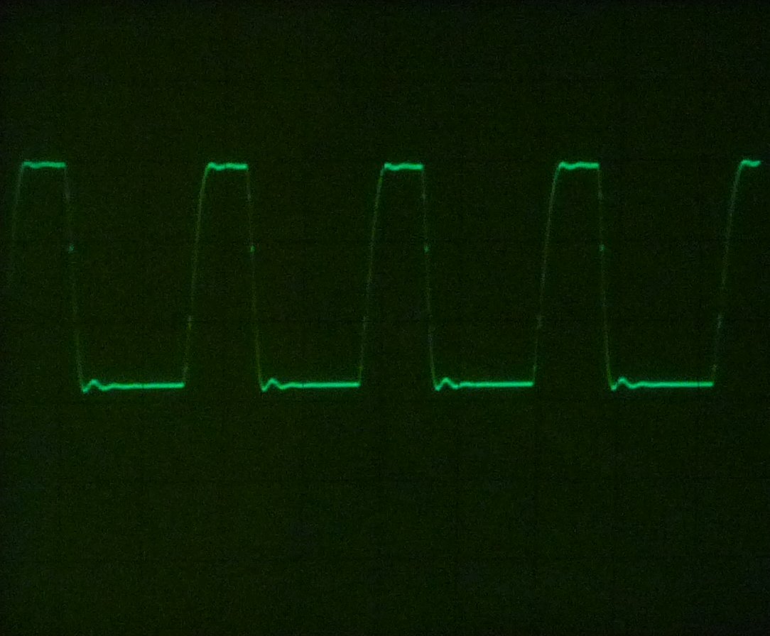 Bild 1a zeigt ein Rechtecksignal von 10kHz/12Vss an 8 ohm, wobei die Endstufe mit 1µF belastet wird. Das Ergebnis kann sich sehen lassen, denn die Endstufe fängt auch ohne Kompensationsmaßnahmen nicht an zu schwingen. Bilder 1b und 1c zeigen ein Dreickecksignal bei jeweils 4 und 8 ohm. An den abgerundeten Spitzen des Dreiecks kann man sehr schön die Wirkungsweise der Begrenzung per softclipping sehen. | ||