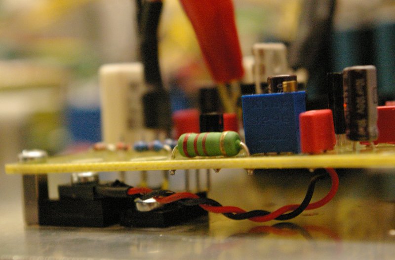 Auf dem nächsten Bild kann man sehen wie Q10 auf dem Mosfet verschraubt sitzt. Das Kabel ist zwar nicht allzu empfindlich, aber ich habe es sicherhalber trotzdem verdrillt: |